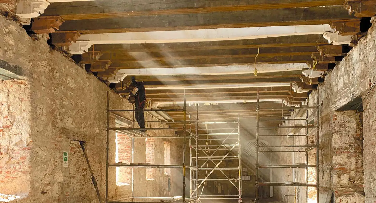 Todos los días, maestros de la mampostería y la carpintería antiguas combinan su saber con el de expertos en técnicas de punta para solucionar los problemas y los dolores que aquejan a un viejo convento con muchos remiendos y que hoy se prepara para una segunda vida.